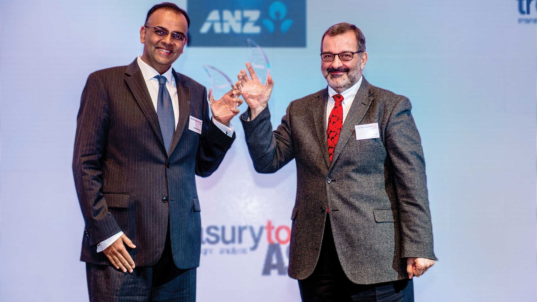Photo of Deven Somaya, Citi and Sid Vasili, Invapay collect on behalf of Hanson Australia.