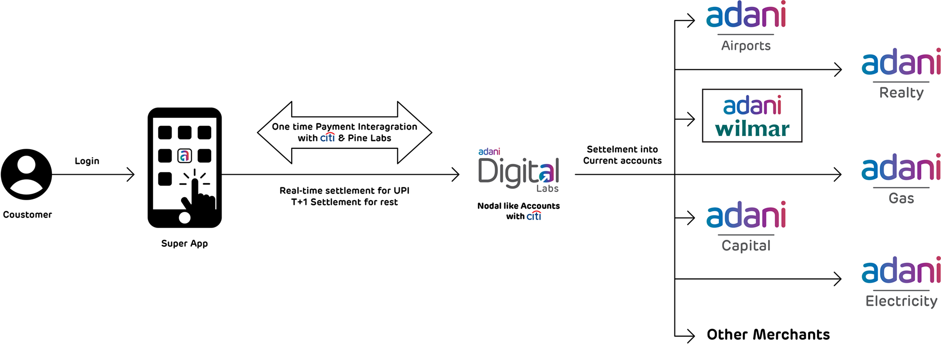 Adani Digital Labs (ADL) aimed to bring all the 400 million end-consumers engaging across the ecosystem of Adani Group under a single digital umbrella. Adani Digital would be the central entity in a hub and spoke model, through which the order booking and collections for all the device-to-device (D2D) businesses, as well as ecosystem participants, would be routed. ADL envisioned designing a digital platform which would offer all the Adani Group products and ancillary services as a unified platform. Through this strategic vision, the Adani Group aimed to provide a digital platform for its six key consumer-facing businesses: Airports, Realty, Wilmar, Capital, Electricity and Gas, as well as multiple business units and offer a common interface to the end consumer.