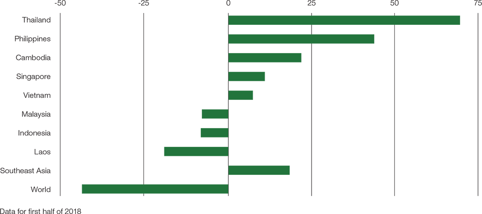 According to analysts at Maybank Kim Eng, the investment banking arm of Malaysia’s Maybank, even smaller economies across the region have experienced big FDI inflows over the course of the current year. Vietnam, for example, saw manufacturing inflows jump 18% in the first nine months of 2018, driven by investments including a US$1.2bn polypropylene production project by South Korea’s Hyosung Corporation. In the Philippines, net FDI into manufacturing soared to US$861m in the same nine-month period from US$144m a year earlier.
